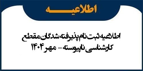 ضمن عرض تبریک و خیر مقدم به پذیرفته شدگان آزمون کارشناسی ارشد سال 1404 جهت اطلاع از فرایند ثبت نام کلیک کنید